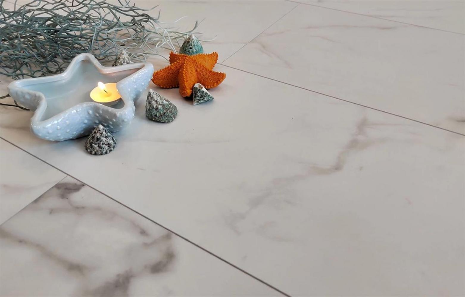 Минерально-каменный MSPC ламинат Мрамор Бело-Серый — это классический декор, имитирующий изысканную текстуру белого мрамора, но в необычном формате большой крупной плитки размером 1220*234 мм. Ламель этой плитки имеет 4-сторонюю глубокую V-образную фаску с крепким лицензионным замком Uniclic. Так как MSPC ламинат обладает 100 % водостойкостью и низким коэффициентом термореактивности, Мрамор Бело-Серый с успехом может быть смонтирован во всех зонах квартиры дома, а не только, где теплый пол является основным источником отопления. Без пороговая укладка в помещениях — до 200 м2. Возможность монтажа под тяжелую мебель — да. Возможность нагрева до +70° С без потери гарантии. В сравнении с обычным керамогранитом, MSPC Мрамор Бело-Серый имеет тактильно более теплую поверхность.