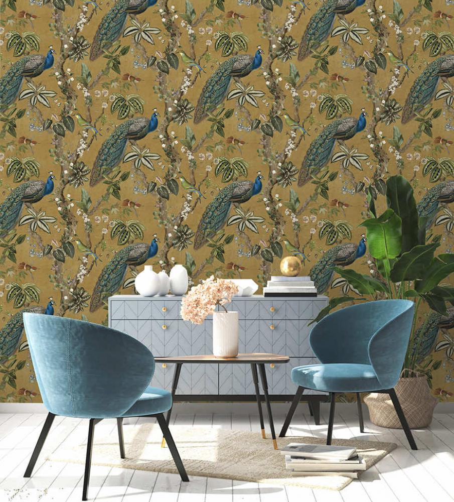 Эти обои привнесут в ваше жилое пространство нотку экзотической красоты, элегантности и величия. Ветви, украшенные вьющимися цветами и богатой листвой, а также вневременная и классическая красота павлина, который станет центром внимания в любой комнате, демонстрируя его великолепие.