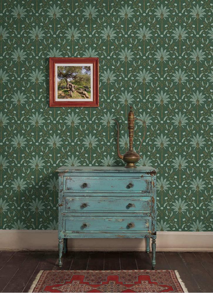 Вдохновленные красотой тропических островов Филиппин, напоминающих о залитых солнцем пляжах, чистом небе и покачивающихся пальмах, лиственные решетки и центральные пальмы принт Ariara привносят дух потрясающих тропиков в любое пространство.
