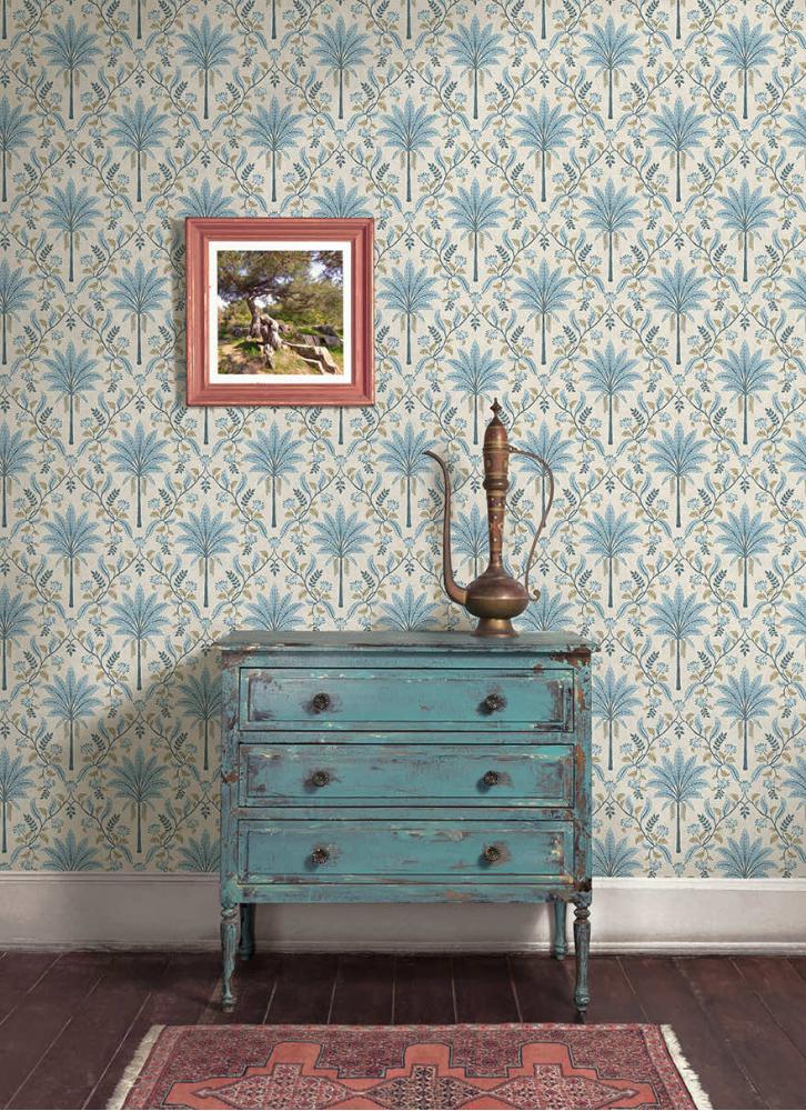 Вдохновленные красотой тропических островов Филиппин, напоминающих о залитых солнцем пляжах, чистом небе и покачивающихся пальмах, лиственные решетки и центральные пальмы принт Ariara привносят дух потрясающих тропиков в любое пространство.