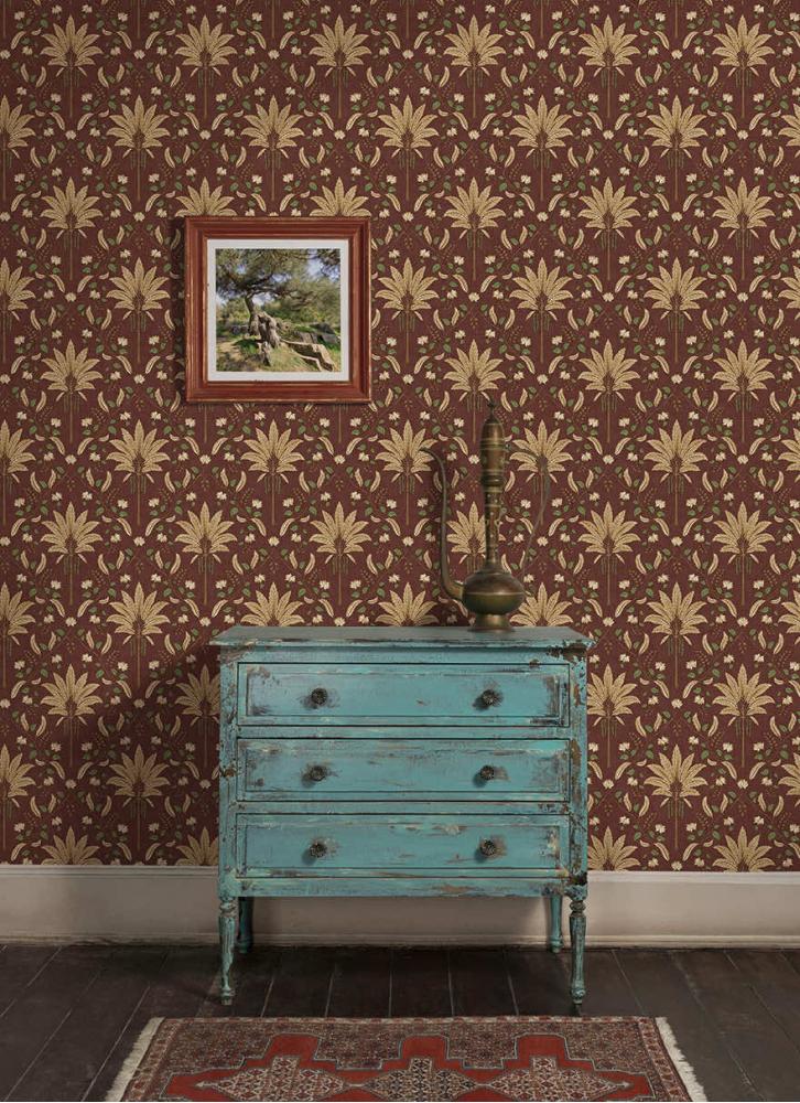 Вдохновленные красотой тропических островов Филиппин, напоминающих о залитых солнцем пляжах, чистом небе и покачивающихся пальмах, лиственные решетки и центральные пальмы принт Ariara привносят дух потрясающих тропиков в любое пространство.
