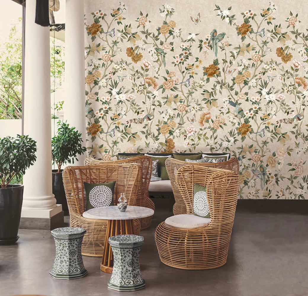 Окунитесь в мир непреходящей элегантности с нашей фреской «Императорские сады», которая перенесёт вас в самое сердце Запретного города в Пекине. На ней изображены вьющиеся пионы, символизирующие богатство и процветание, переплетённые с причудливыми птицами и бабочками. Каждый элемент прекрасно расписан вручную и тщательно проработан, что оживит ваш интерьер дизайном, рассказывающим историю древней красоты и неувядающей природы.