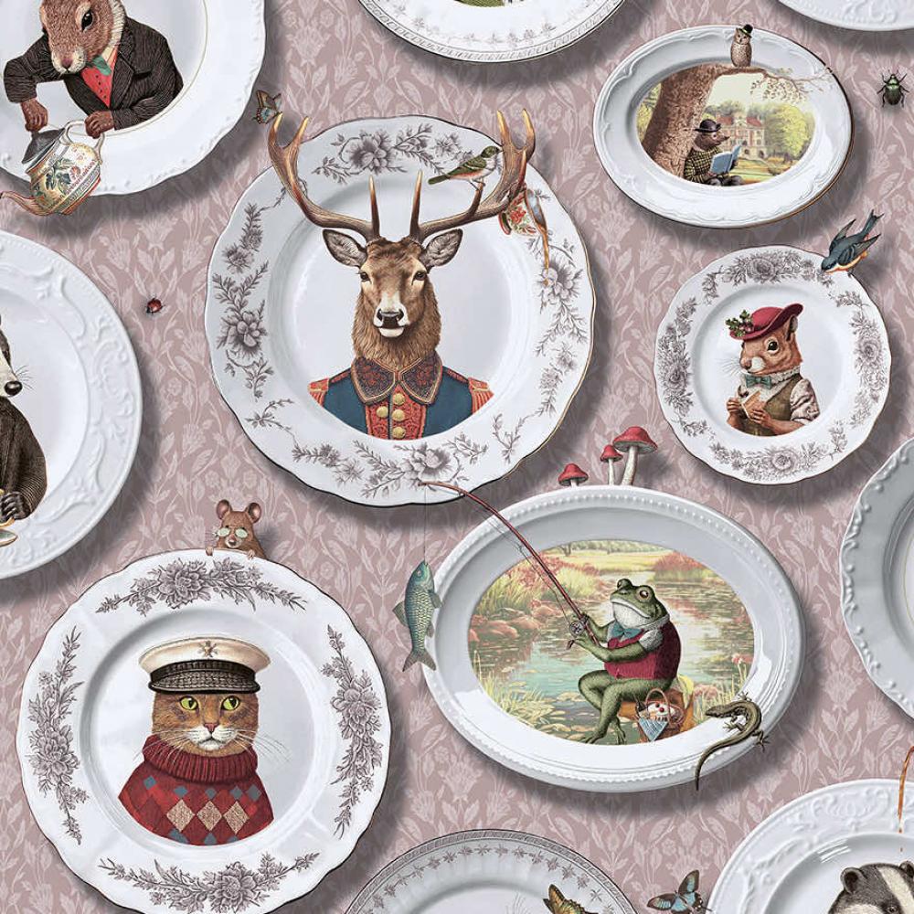 На этих обоях в винтажном стиле изображены забавные игривые животные
